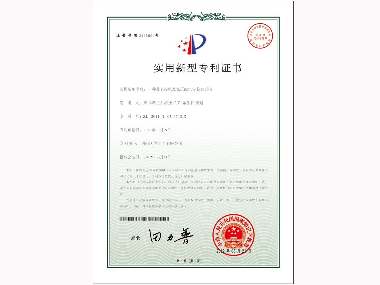 公司實(shí)用新型專(zhuān)利證書(shū)