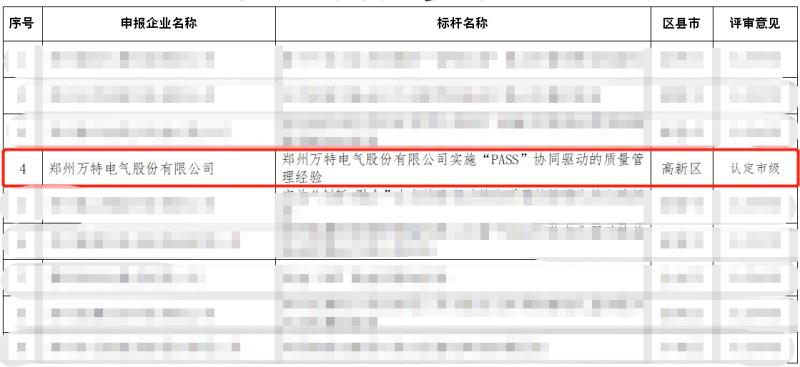 5月22日,鄭州市工信局公示,認(rèn)定我公司實(shí)施“PASS”協(xié)同驅(qū)動(dòng)的質(zhì)量管理經(jīng)驗(yàn)2023年鄭州市質(zhì)量標(biāo)桿企業(yè),鄭州市此次共認(rèn)定20家企業(yè),高新區(qū)僅有兩家企業(yè)通過。